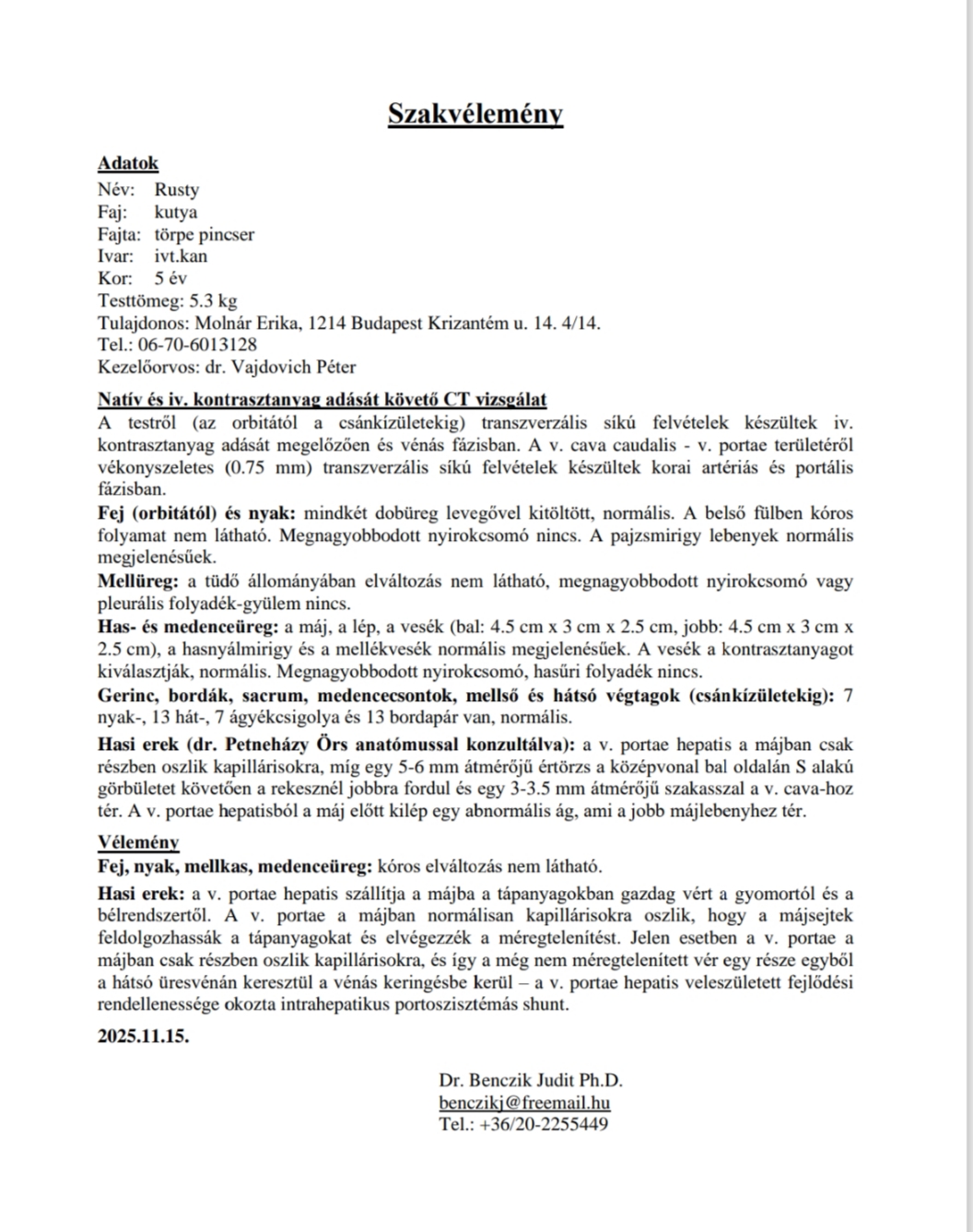 Kedves doktor úr, 5 éves törpe pincser kutyánk esetében kiderült hogy v. portae hepatis veleszületett fejlődési