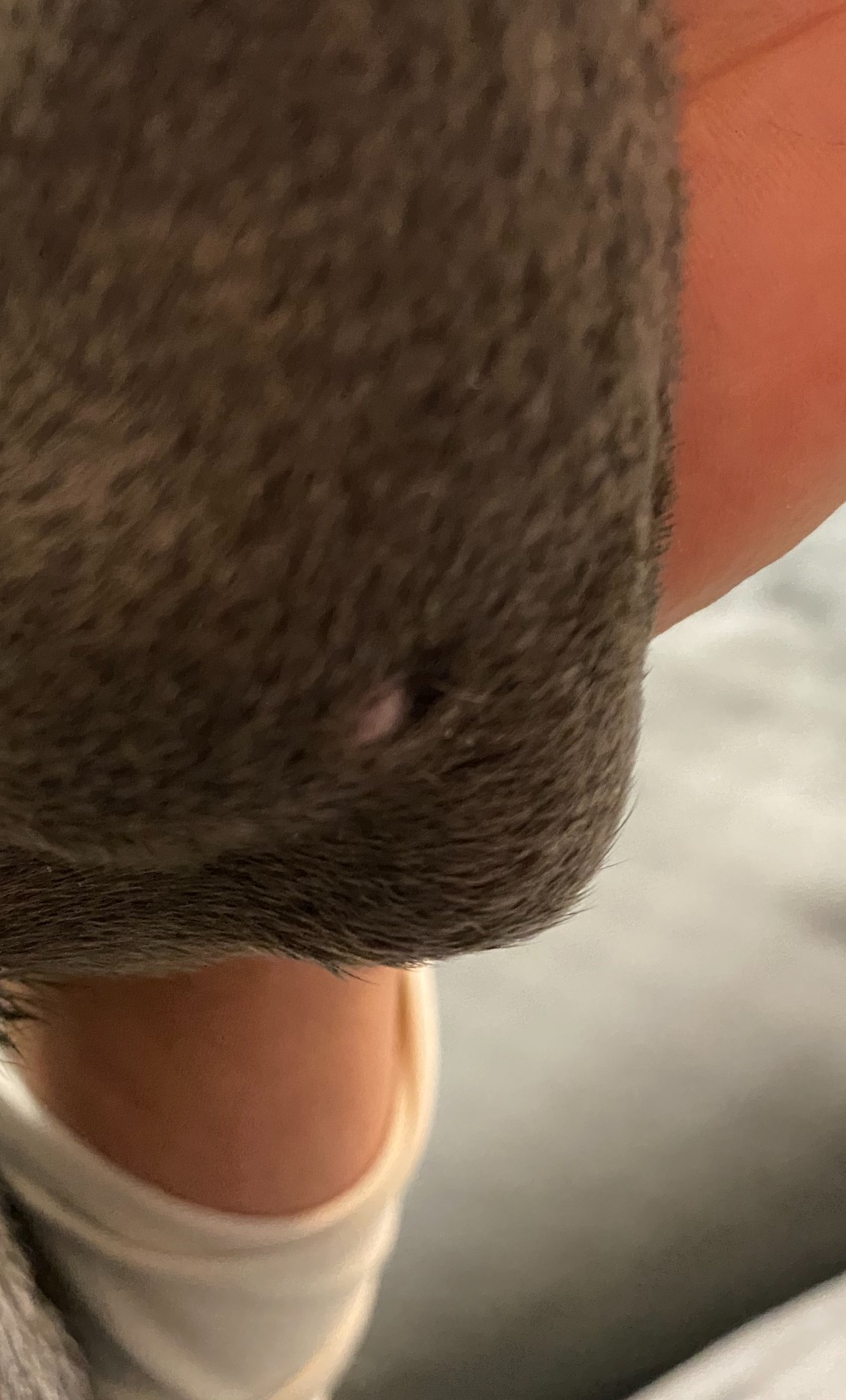 A tünetekben leírtaknál elbizonytalanodtam. A bőr tünet. Az egyik alsó lábszára belső felén, egy kb. 4 mm-nyi részen, kihullott a szőre. Erről tudok küldeni egy fotót. Csomót itt nem észlelünk. Eddig ennek nem tulajdonítottuk jelentőséget, mert nem vakarta.