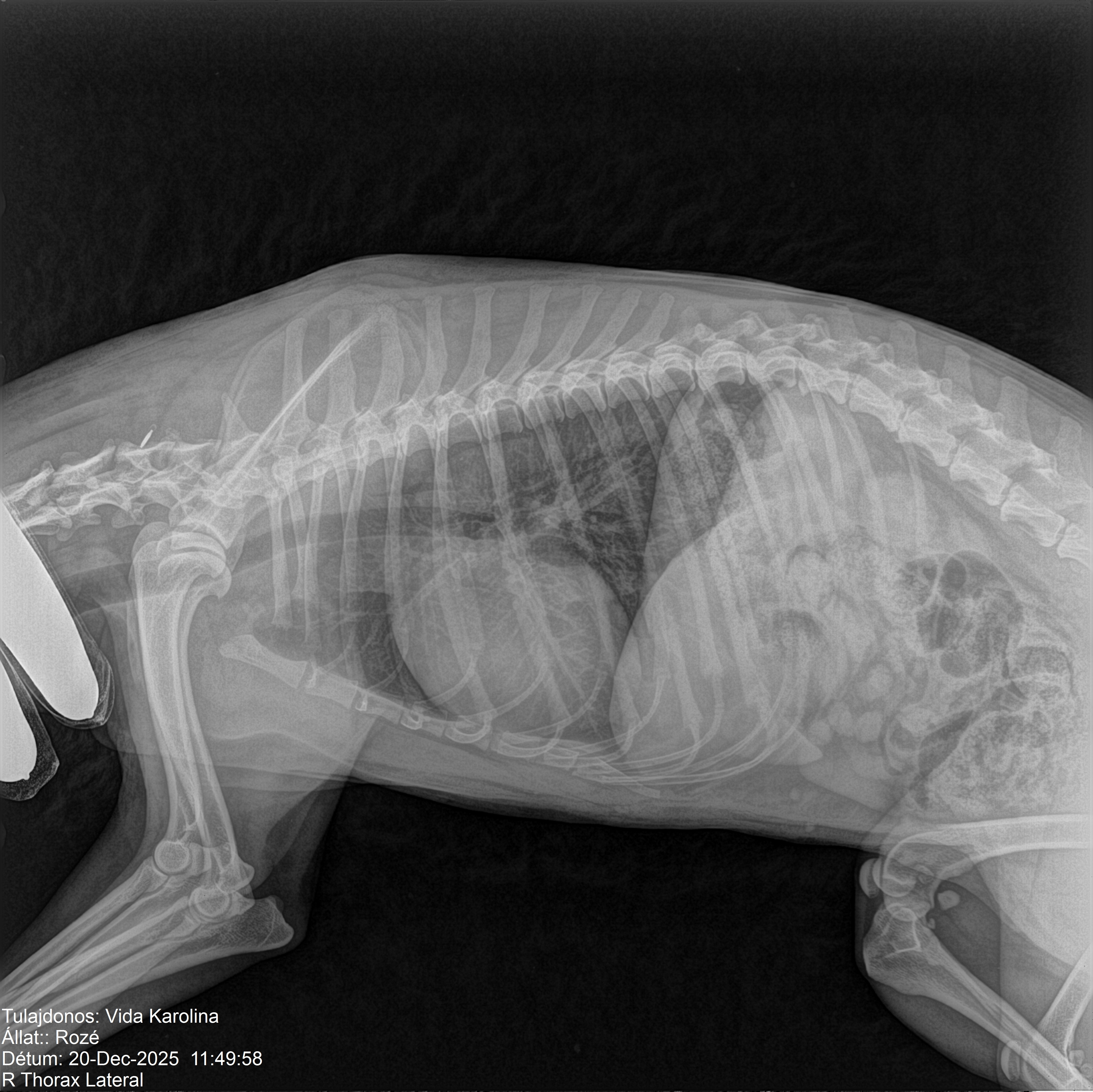 Dec. 11-én voltunk először orvosnál, akkor kapott steroid injekciókat, valamit itthonra, 1 hétre aktilt és paxirasol-t. Kennel köhögésre gyanakodtak, habár a kutyatárs nem beteg azóta sem. A gyógyszer szedése közben jobban lett, de miután elfogytak a gyógyszerek, megint elkezdett krákogni, köhögni. Ezután állatkórházba mentünk, ahol röntgen is készült (csatolom) – itt tüdőgyulladást állapítottak meg legnagyobb valószínűséggel, és kapott újra injekciót meg Doxypharm-ot egy hétre. A történet kb. megismétlődött, elfogyott a gyógyszer, amíg szedte, meg sem pisszent, most megint köhög néha.