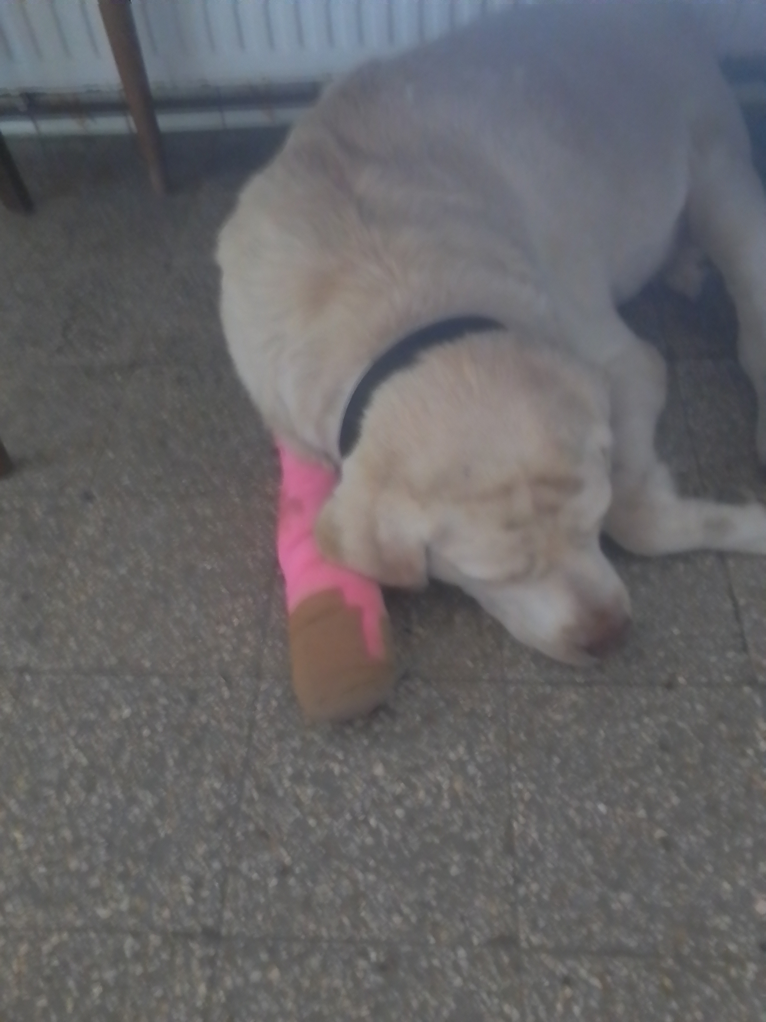 De vidám,eszik és jó kedvű.🙂 A lábát műtötték.🙁